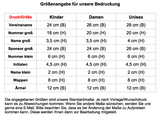 Solltest du von uns nicht aufgeführte Wünsche zu deiner Veredelung haben (Farbe, Position, etc.), schreibe uns einfach über unser Kontaktformular oder direkt per E-Mail: kontakt@teamsport-friedrichsort-shop.de an. Im Anschluss erhältst du ein individuelles Angebot von uns.